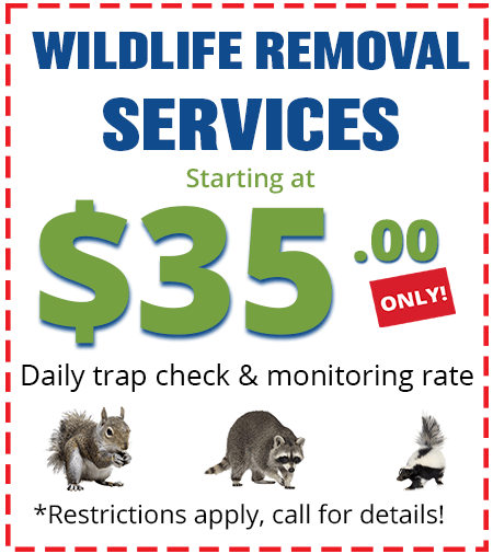 The professionals at TAYLOR'D Pest Services are your trusted wildlife removal experts! We use wildlife control and capture methods to safely remove unwanted nuisance animals from your property, such as squirrels, skunks, opossums and raccoon.